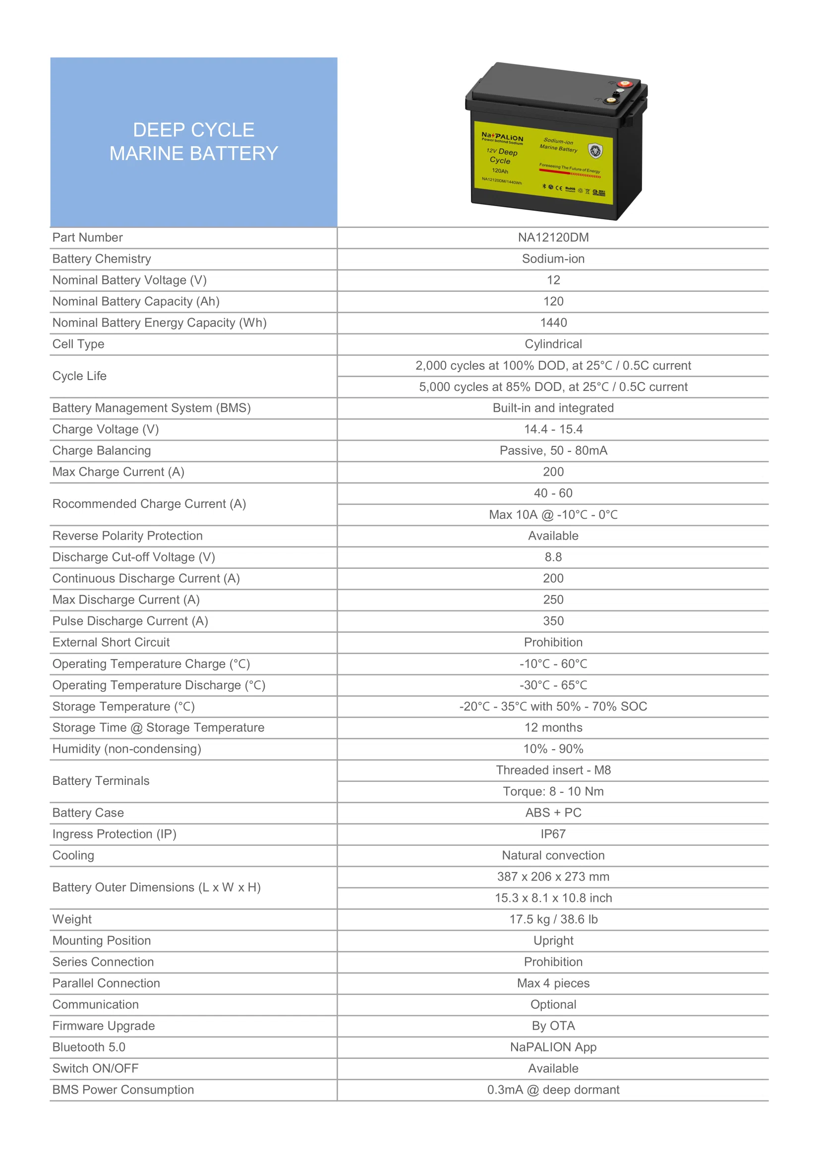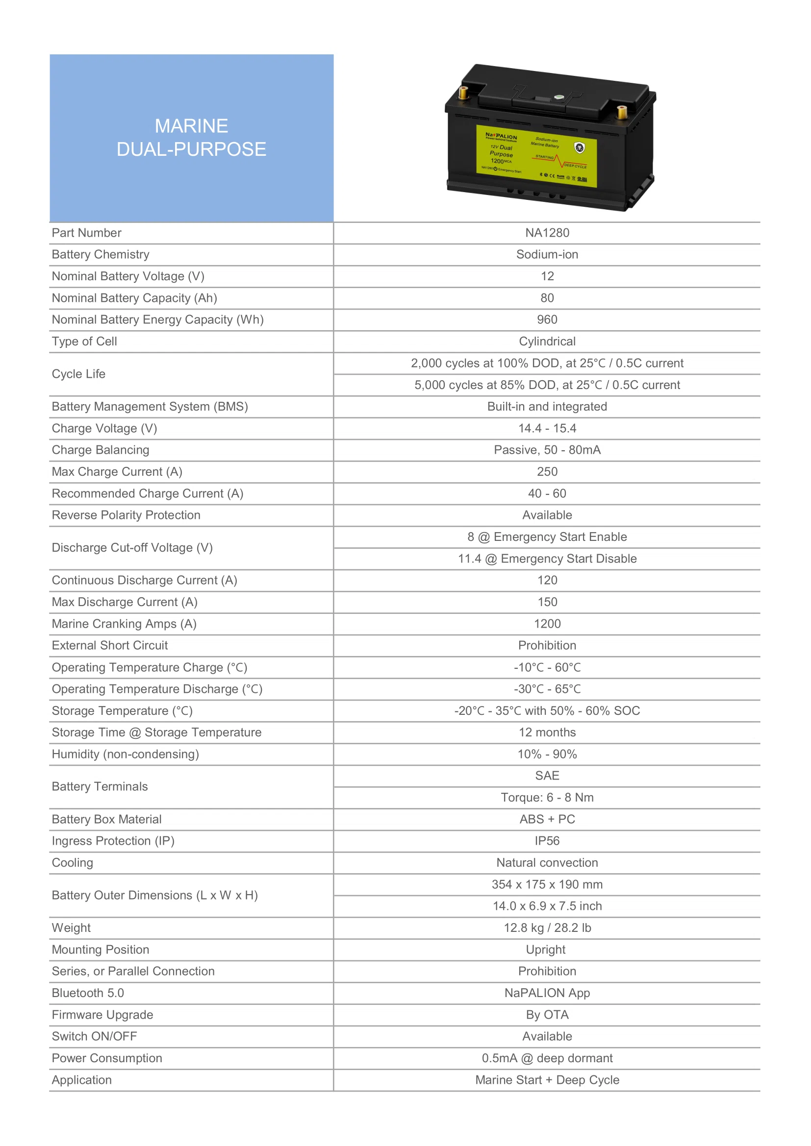 To help you understand the differences between sodium-ion battery and lead-acid battery, the NA2170 Pro is compared with a typical AGM GROUP 27 marine battery as follows: